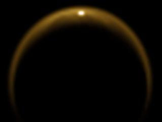 由于土衛六上空厚厚的大氣層的干擾,土衛六表面所反射的太陽光大多數都被遮蔽!翱ㄎ髂崽枴碧綔y器也是在偶然間拍下了這張罕見的照片。照片拍攝于2009年7月8日。