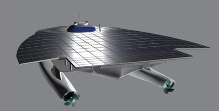 船的上方設有面積達500平方米的太陽能板,圍繞著中間凸起的駕駛艙。