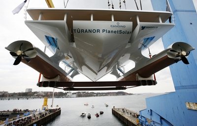 全球最大太陽(yáng)能船艇德國(guó)亮相 將環(huán)游世界(組圖)