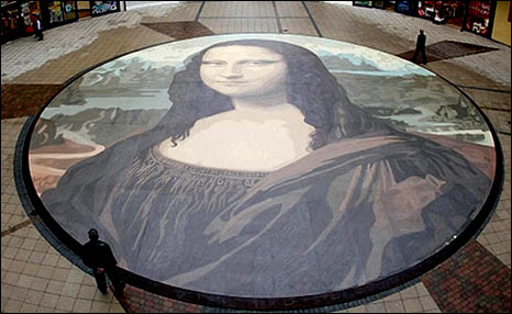 據英國廣播公司報道,這個全民參與的藝術作品可謂世界上最大的蒙娜麗莎肖像。該地區上百名民眾都加入到了這個藝術項目中來。這幅巨大的乙烯肖像占地面積達240平方米,是掛在巴黎盧浮宮博物館那幅原作的50倍之大,可以容納22輛倫敦的公共汽車。