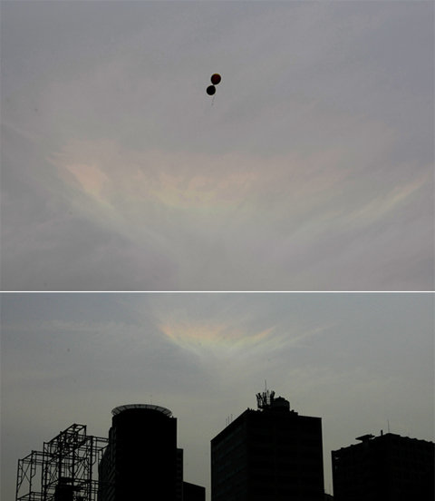 中新網6月2日電 據韓國《中央日報》報道,韓國前總統盧武鉉方面1日向外界發布了德壽宮上空出現彩虹的照片,這些照片攝于上個月29日在首爾廣場為盧武鉉進行路祭的時候。