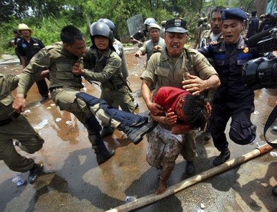 沖突發生在首都雅加達北部的丹戎不碌,該市發言人庫爾尼亞(Cucu Kurnia)稱,約2000名安保人員與600名警察用催淚彈、橡皮子彈、高壓水槍與警棍驅散示威民眾,。警方估計示威民眾約有500人。