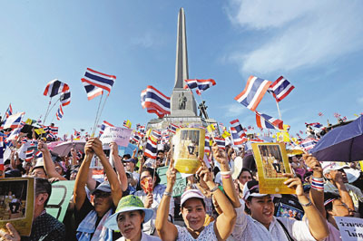 紅衫軍昨日繼續(xù)占領市中心拉差巴頌路口以及繁華橋一帶。示威領袖打算明日發(fā)動新一輪游行,示威地點仍有待商討。據悉,部分領袖打算游行到金融中心是隆路,針對盤谷銀行總行等金融機構總部發(fā)動示威。有領袖指責盤谷銀行為“貴族象征”,呼吁支持者關閉該行戶口。