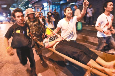 中新網(wǎng)4月23日電 據(jù)香港《文匯報(bào)》報(bào)道,泰國(guó)反政府紅衫軍聚集在首都曼谷市中心,用削尖的竹枝和車胎自制防衛(wèi)欄,保護(hù)示威營(yíng)地,成為了泰國(guó)軍警的“禁區(qū)”,卻出乎意料地成為了“旅游景點(diǎn)”,好奇的游客爭(zhēng)相拍照留念。