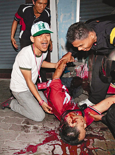 納塔武對記者說:“阿披實已為內戰揭開序幕了。我們緊急要求政府撤軍,停止一切暴力行為。如果阿披實不同意;,我不知道我們能否活過今晚。我們希望阿披實不想要戰爭!