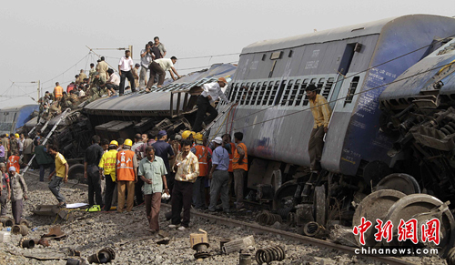 事發(fā)于當(dāng)?shù)貢r(shí)間28日凌晨1時(shí)半,一列由東部西孟加拉國邦首府西加爾各答開往西部大城市孟買的快速客運(yùn)火車,駛至加爾各答以西約150公里的一條小鎮(zhèn)時(shí),13節(jié)車廂突然出軌,一列貨運(yùn)火車迎面駛至,把客車其中4節(jié)車廂撞至嚴(yán)重變形扭曲,大批乘客當(dāng)場喪生,多人被困。地方官員稱,列車出軌時(shí)大部分乘客正睡覺,來不及反應(yīng),死傷人數(shù)可能繼續(xù)增加。