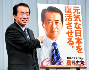 日本首相菅直人17日公布民主黨參議院選舉競選綱領和競選海報。