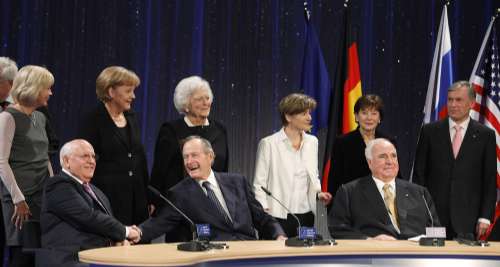 紀念活動主辦方贊揚老布什與戈爾巴喬夫分任美蘇領袖時,對拆除柏林墻及促成兩德統一的貢獻,還贊揚德國前總理科爾“抓住關鍵的一刻”,促成德國統一。