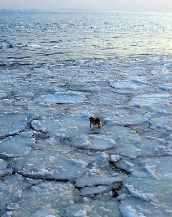 這只小狗第一次被人發(fā)現是在波蘭的格魯瓊茲(Grudziadz),河流上游40英里處。當時當地的消防人員試圖營救它,但由于它在距河岸甚遠處漂流,河中冰層又很厚,如果派出救援艇,會有翻船的危險,最終救援人員只好放棄了營救。