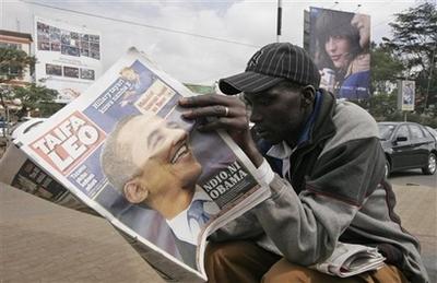 肯尼亞4日出版的報(bào)紙大幅登載有關(guān)奧巴馬的報(bào)道。《肯尼亞時(shí)報(bào)》用整個(gè)頭版刊登了奧巴馬在白宮前的一幅照片,標(biāo)題為“奧巴馬創(chuàng)造歷史”。