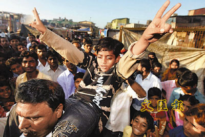 中新網3月1日電 據香港《文匯報》1日報道,在奧斯卡橫掃8獎大獎的《貧民窟的百萬富翁》中飾演男主角童年的印度童星愛資哈爾丁,由洛杉磯返回孟買時受到英雄式歡迎,他父親伊斯梅爾更將他捧起,把他像獎座般展示,但周四愛資哈爾丁拒絕應父親要求到屋外“做騷”,父親當眾對他又踢又摑,令鄰居和途人大為震驚。