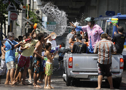國際先驅導報記者沈敏 特約撰稿蔣曉峰發自曼谷 今年的宋干節(潑水節)有了個“黑色”,至少是“灰色”的開始,但一天過后,泰國人的節日情緒又開始高調起來。