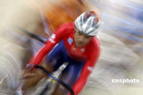 香港選手黃金寶參加國際自盟場地自行車世界杯男子記分賽。中新社發 盛佳鵬 攝
