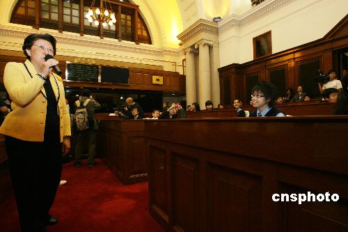 圖為立法會主席范徐麗泰親自向前來參觀的同學介紹情況。