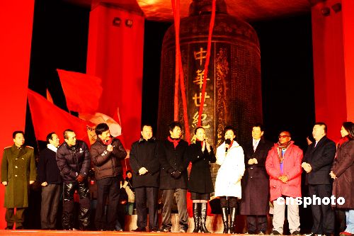 12月31日晚,“喜迎奧運 祝福北京”大型主題活動在中華世紀壇舉辦,多位全球華人熟悉的嘉賓在零點時刻為北京敲響二00八的新年鐘聲,宣告北京正式跨入奧運年。千里之外的香港時代廣場迎新年活動通過衛星與北京連線互動,共同慶祝奧運年的到來。中新社發 鄭雄增 攝