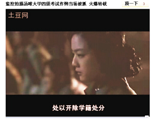 視頻的高潮出現(xiàn)在校方采取的反作弊行動,畫面切換成《無間道1》中黃秋生部署抓琛哥,臺詞卻換成:“這次四級考試,梁校長下令狠抓作弊,所以我們采用高科技無線遠程監(jiān)考,考試的時候,大家用望遠鏡遠距離瞅著考場,一旦發(fā)現(xiàn)作弊的,立馬用手機報告抓捕大隊,一個活口不留。”并加入聯(lián)通廣告元素。接下來,《越獄》里的林肯“奉命”拿著望遠鏡報告:“26層102窗戶第三排那個小妞在傳紙條。”《新扎師妹》里的方中Sir接獲報告后立馬拿著呼叫器大叫:“好,我們立馬去逮。”最后,王佳芝和鄺裕民雙手被縛,跪在石礦場上,這時配上校方用無比嚴肅口吻說出的“宣判詞”:“王佳芝等同學(xué)作弊,違背了天天學(xué)習(xí),好好向上的校訓(xùn),現(xiàn)處以開除學(xué)籍處分。”