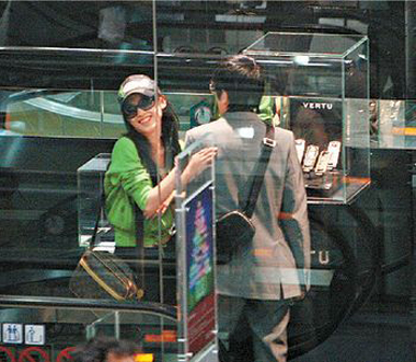 港媒稱,較早前,赴港出席完活動的黃圣依未有即時回內地,選擇與經理人男友留港購物。當日下午5時,架著墨鏡,戴上過時的Von Dutch貨車帽,穿上草綠色長袖衫背著6600元LV Reporter袋的黃圣依,與穿上灰色西裝的楊子在專賣極貴價手機的Vertu專門店中挑選電話,只見Eva對店內一部賣53000元(港幣,下同)的法拉利1947限量版手機愛不釋手,不時跟男友研究鍵盤,又以肩膀不斷磨蹭男友,希望男方付錢買下,可惜,黃圣依最后都空手而回。