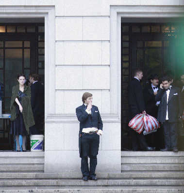 由于音樂廳四個(gè)門口都有劇組的工作人員嚴(yán)格控制進(jìn)出人員,而導(dǎo)演陳凱歌,主演黎明、孫紅雷又都是經(jīng)過(guò)地下停車場(chǎng)直接進(jìn)入音樂廳內(nèi)部,所以早報(bào)記者只是從工作人員處獲悉,當(dāng)外籍演員都在兩側(cè)邊門抽煙聊天時(shí),黎明正在音樂廳內(nèi)上妝。據(jù)消息人士透露,為了昨日這場(chǎng)戲,黎明早在北京拍攝時(shí)就開始準(zhǔn)備,而且為了符合梅蘭芳去百老匯時(shí)的體態(tài),黎明還特意增肥,使臉龐看起來(lái)圓潤(rùn)一些,更貌似梅蘭芳。 記者 劉嘉琦