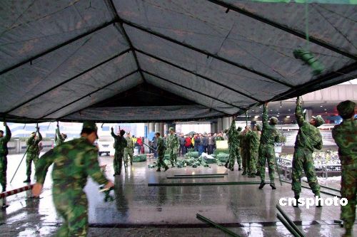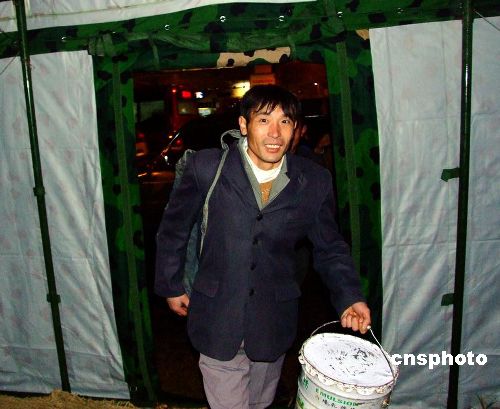 1月27日,南京軍區(qū)“硬骨頭六連”所在師接到杭州市政府請(qǐng)求支援電話,派出200余名工兵,火速趕往杭州火車(chē)站。官兵們寒著風(fēng)雪嚴(yán)寒,很快搭設(shè)好12頂野戰(zhàn)帳篷,并在帳篷里鋪設(shè)了草墊子,為滯留旅客提供休息之地。滯留在車(chē)站的民工旅客走進(jìn)野戰(zhàn)帳篷,臉上露出笑容,高興地說(shuō):今晚不會(huì)挨凍了,感謝黨和人民解放軍。據(jù)車(chē)站負(fù)責(zé)人介紹,因冰雪天氣影響,這天約有2萬(wàn)名旅客滯留杭州火車(chē)站。中新社發(fā) 邱柏星 攝