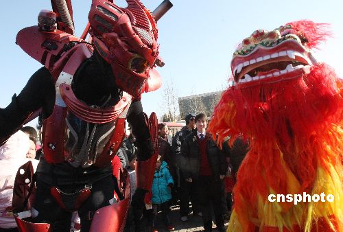 2月9日,在北京舉行的“2008北京朝陽國際風(fēng)情節(jié)”上,來自英國、斯洛文尼亞、西班牙、美國、瑞典、俄羅斯、烏拉圭等10個(gè)國家的多支表演藝術(shù)團(tuán)隊(duì)、180多位中外藝術(shù)家在多個(gè)舞臺進(jìn)行不同場次的精彩表演。中新社發(fā) 錢興強(qiáng) 攝