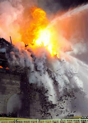 韓國第一號國寶“崇禮門”燒毀塌落損失慘重(圖)