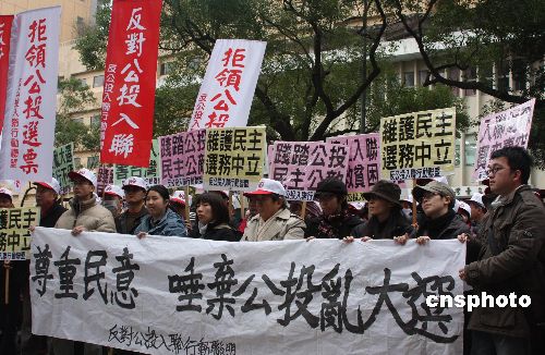 臺(tái)民眾"中選會(huì)"前表達(dá)反對(duì)"入聯(lián)公投"訴求