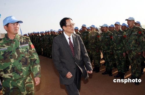 2月26日,中國政府達爾富爾問題特別代表劉貴今來到中國維和多功能工兵分隊慰問,中國維和工兵分隊是首個非洲之外國家派遣的維和部隊,他們近日已搬進位于蘇丹南達爾富爾的營地。中新社發 李鵬 攝