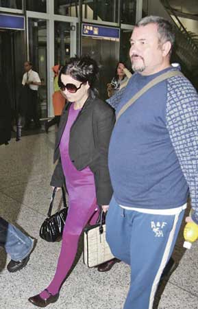 之后,穿著紫色連色裙、黑色外套的Bjork挽著手袋出現,同行的女助手則推出BB車,工作人員就叫記者不要拍孩子的照片。Bjork的6歲女兒在BB車上亦懂得避鏡頭,索性雙手掩面。Bjork在身形高大的外籍保鑣似“人肉三文治”式夾著護送離開機場上車,沿途記者拍照,她也沒有理會,但面上也有笑容。她身邊的保鑣不時出手推開擋路的記者,但沒有動手打記者,算很斯文了。