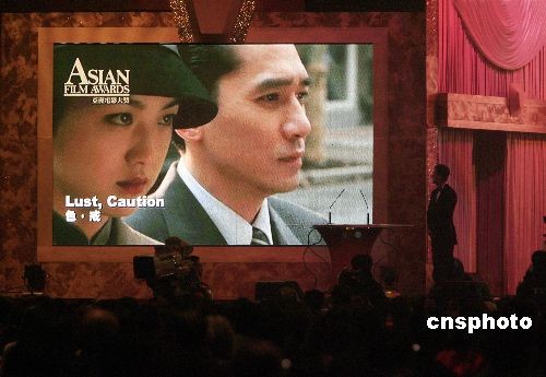 三月十七日晚,香港影視娛樂博覽開幕禮暨第二屆亞洲電影大獎頒獎典禮在香港會議展覽中心舉行。梁朝偉憑借在電影《色,戒》中的出色演出,獲得最佳男主角稱號,出演韓國電影《密陽》的女演員全度妍獲得最佳女主角獎。中新社發(fā) 王麗南 攝