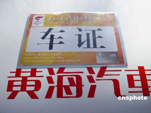 點燃激情傳遞夢想--奧運圣火傳遞車證。中新社發 邵風雷 攝