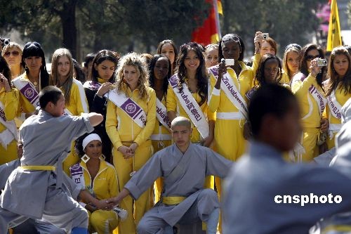 國際旅游小姐在少林寺模仿中國武術(shù)(2)