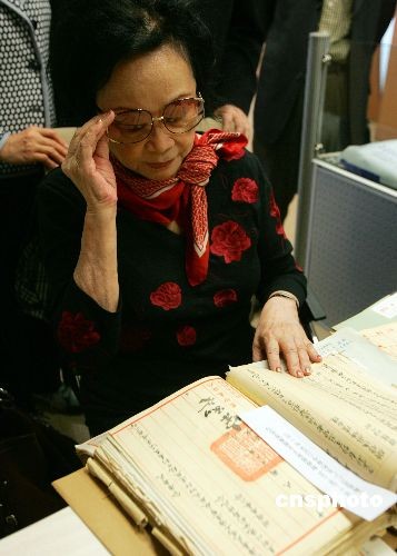 圖為馮宋瓊頤在翻閱宋子文親筆簽署的公文原件。中新社發 湯彥俊 攝