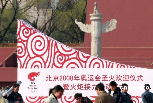 北京天安門廣場“緊鑼密鼓”迎圣火(2)