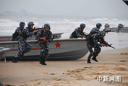 美國上將觀摩中國海軍陸戰隊的軍事演練