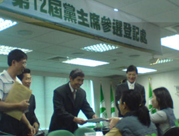 民進黨主席選舉登記今天開始,民進黨籍“立委”蔡同榮在今天下午率先完成登記。蔡同榮主張集體領導、增設副主席。他指出,民進黨內青壯派口頭堅持“本土意識”,但某些場合卻又懷疑“本土意識”,不夠堅持 “臺獨”,這點與他有很大不同。