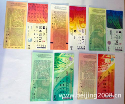 中新網(wǎng)4月23日電 北京時間今天上午,“北京奧運會第三階段票務銷售情況新聞發(fā)布會”在北京奧運新聞中心舉行。北京奧組委票務中心主任朱炎和北京奧運會奧運藝術(shù)中心主任王敏一起揭開了北京奧運會門票的票樣。
