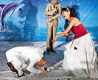 中新網(wǎng)5月4日電 湯鎮(zhèn)業(yè)前晚(2日)在青島郎園酒吧舉行秘密婚禮,迎娶青島姑娘文靜。一對新人與海甚為有緣,幾年前在海南島海邊相識,又情訂于海邊,最后選擇在海邊的酒吧結(jié)婚。婚禮現(xiàn)場湯鎮(zhèn)業(yè)更重演跪地求婚一幕,溫馨感人。