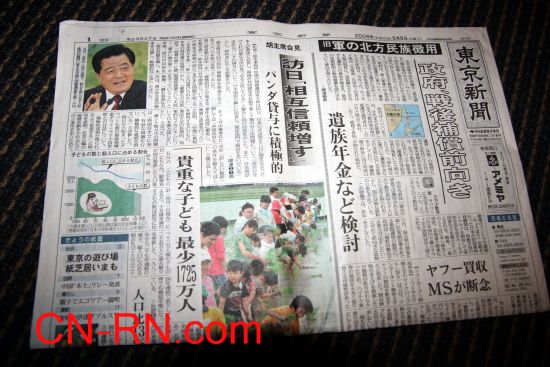 胡錦濤主席訪日 日本四大報(bào)頭條報(bào)道(組圖)(2)