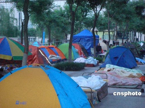 組圖:陜西寶雞市民廣場度夜以防余震(2)