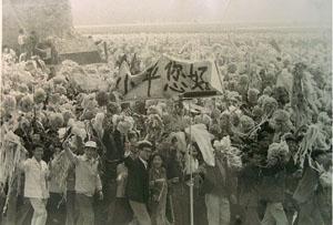 在游行隊伍中,北京大學學生舉起寫著“小平您好”的橫幅走過檢閱臺前,引起陣陣歡呼聲。簡短的四個字,濃縮了深厚的感情。