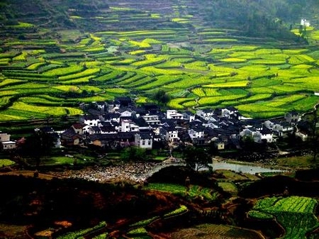 婺源山明水秀,松竹連綿,飛檐翹角的古民居蜿蜒于青山綠水,或依山,隱現(xiàn)于古樹青林之間;或傍水,倒映于溪池清泉之上;與層層梯田、繚繞云霧相映成趣,如詩如畫。四季景色各呈千秋,尤其是春秋兩季,漫山遍野的映山紅和滿山的紅楓葉猶如一簇簇火苗爭(zhēng)奇斗艷。置身于這樣的景色之中,讓你感覺到心曠神怡和留連忘返。