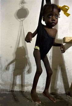 今年,由于風暴襲擊,海地60%的糧食收成被橫掃一空。在某些地區,無國界醫生組織發現,營養不良的比例高達5%,其中,兒童更是受害最大的人群。據美聯社報道,無國界醫生組織比利時分部的負責人馬克斯.科斯奇表示,除了這26名孩子,還有65個嚴重營養不良的兒童被送到臨時搭建的山區帳篷診所及太子港等地區的醫院接受治療。“有一個孩子在治療中死去了”。這些孩子的癥狀包括腸胃萎縮,因營養不良導致色素減少、發色變淡,有些甚至出現了浮腫,這是因蛋白質缺乏引起的功能紊亂癥狀。