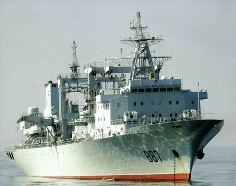 “微山湖”號綜合補給艦(舷號887)是中國自行設(shè)計建造的最大補給艦,排水量接近3萬噸,可同時為兩艘以上艦船補給,2007年曾與“廣州”艦一起出訪歐洲多個國家。