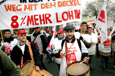 上周四在波茨坦進行的最后一輪勞資談判最后宣告破裂,工會隨即醞釀罷工。此次罷工的目的是要求大幅提高工資。工會要求為聯(lián)邦和市鎮(zhèn)機關130萬公務員一年提高工資8%,或者起碼每月漲工資200歐元,但是資方卻提出兩年內分3個階段漲5%的條件,而且同時還要求延長工作時間。