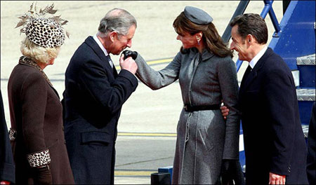 當天,“第一夫人”布呂尼身著迪奧高領灰色風衣、頭戴一頂與之相配的帽子,與薩科齊款款走下飛機。由于名模出身,為了不喧賓奪主,布呂尼特意穿了一雙黑色的平跟鞋。隨后,薩科齊夫婦在查爾斯夫婦的陪同下走出機場。