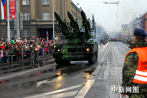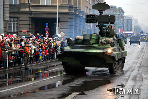 中新網布拉格10月28日電(黃頻) 捷克28日在布拉格歐洲大街舉行盛大閱兵儀式紀念捷克斯洛伐克90周年獨立日。這是布拉格23年來,也是捷克和斯洛伐克自從1993年1月1日起成為兩個主體國家之后第一次舉行的盛大閱兵儀式。