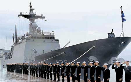 中新網(wǎng)3月4日電 據(jù)韓國《中央日報(bào)》報(bào)道,3日,將被派遣到索馬里海域的韓國海軍“清海部隊(duì)”成立儀式在海軍作戰(zhàn)司令部釜山基地舉行。清海部隊(duì)擁有一艘4500噸級(jí)驅(qū)逐艦“文武大王艦”、一架反潛直升機(jī)和30名履行訊問搜索任務(wù)的特戰(zhàn)人員等,加上文武大王艦上原有的船員,總規(guī)模達(dá)到了300多人。