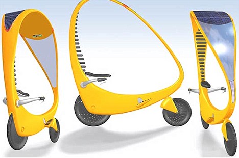 據英國媒體25日報道,這種亮黃色的太陽能自行車外觀看起來和普通的自行車沒有多大區別;不過在自行車上卻載有一個可以接受太陽能的天蓬裝置。當使用者蹬自行車上的腳踏板后,天蓬將會把接受到的太陽光轉化成能量儲存在自行車電池中,該電池通過放電驅動自行車后輪處的電子發動機,使得自行車行進。