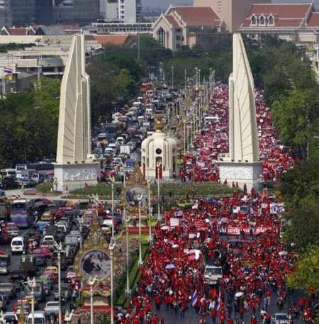 中新網2月25日電 據香港《大公報》二十五日報道,泰國反獨裁民主聯盟(反獨聯)二十四日在首都曼谷舉行大規模反政府集會示威活動(見圖),向阿披實總理領導的聯合政府施壓。