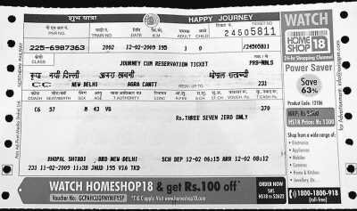 售票員接過記者填好的乘客信息單,將相關信息輸入電腦,很快,一張巴掌大小的紙片從打印機中出來。記者如數把錢遞了進去,他清點之后把那張紙片遞了出來。這就是印度的火車票?!記者感到很好奇。票面上清楚地印著記者剛才填寫的主要信息(見上圖)。除了這些,還有一些廣告。